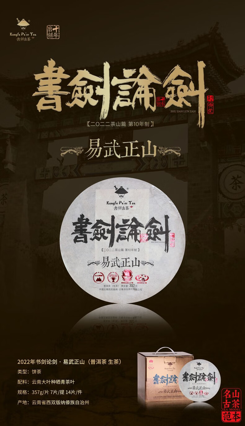 Shujian Pu-erh 2022 Yiwu Zheng Shan Pure Material Ancient Tree Raw Tea Cake 357g